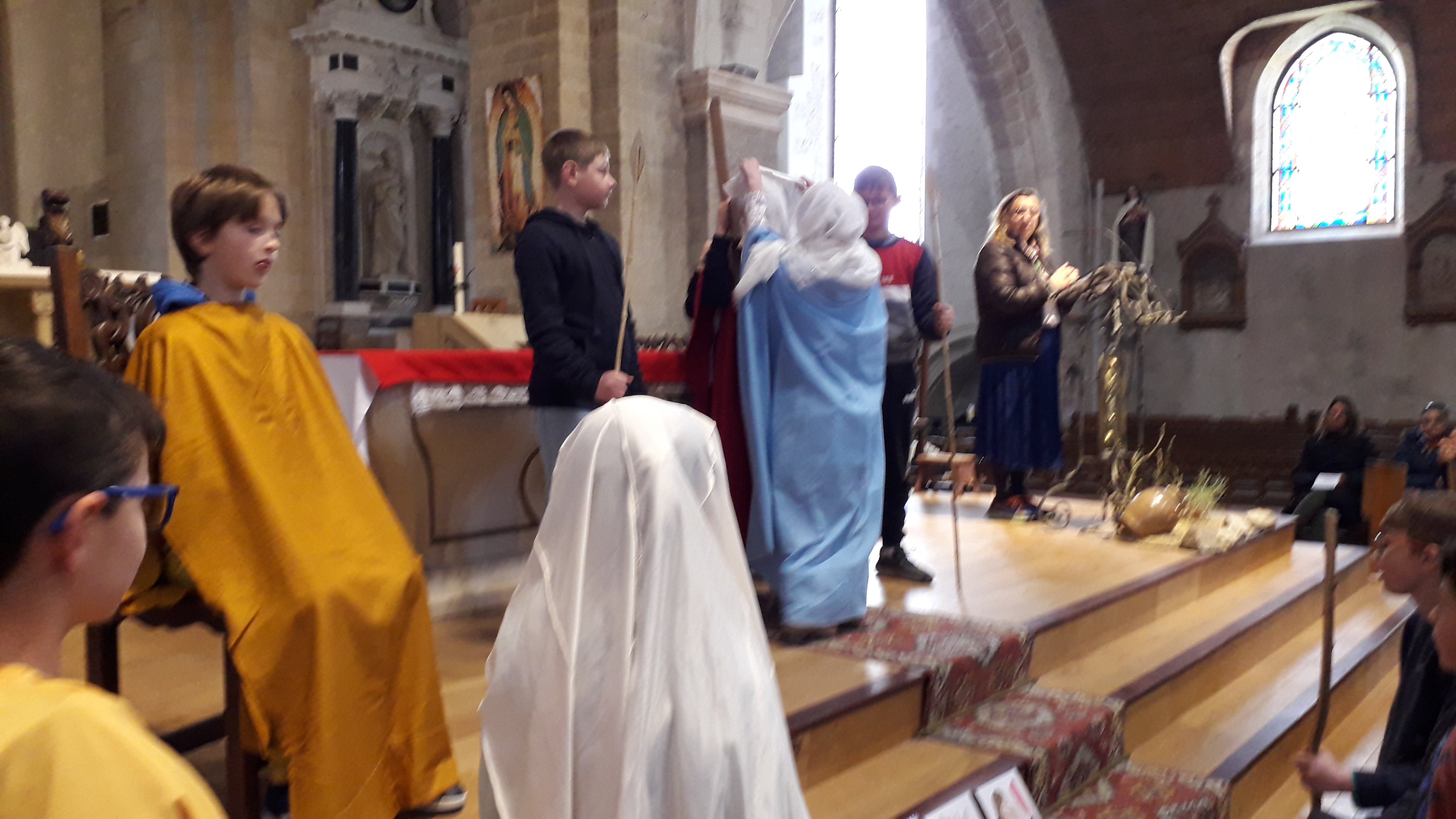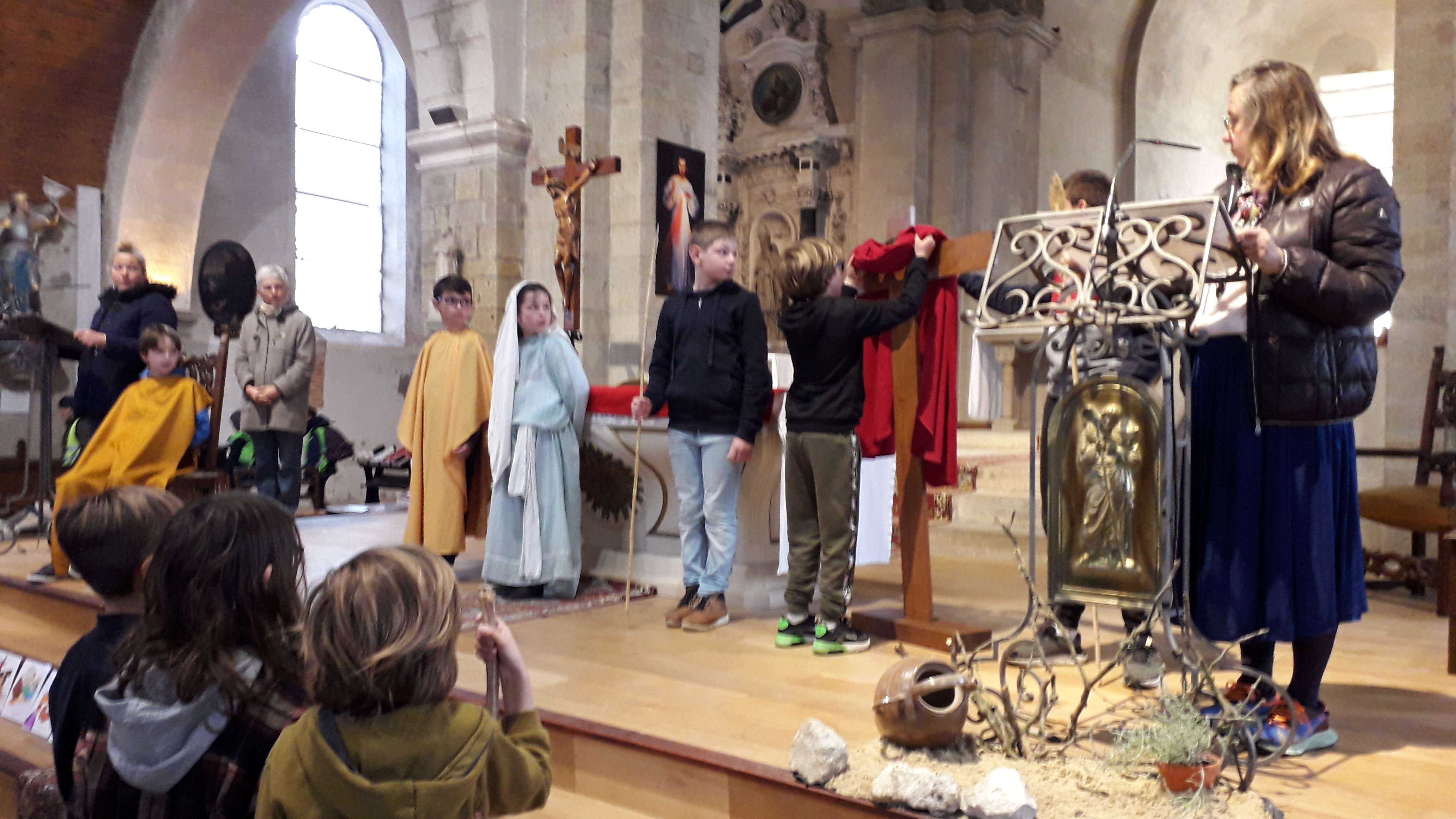 Vendredi 31 mars, nous nous sommes rendus dans l’église pour notre séance de catéchèse. Ensemble nous avons vécu un chemin de croix animé par les élèves qui ont fait leur communion l’année dernière puis ceux qui sont en chemin vers le sacrement de l’Eucharistie ou de Profession de Foi.